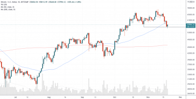 На дневном графике 50MA — важный уровень, на который многие трейдеры ориентируются при принятии решений, — не стала для цены поддержкой. В последний раз такое случалось в сентябре и тогда цена провела около 12 дней ниже этой линии, прежде чем снова взмыть выше неё. Не тот индикатор, которым я сам обычно пользуюсь, но хотел им поделиться, потому что об этом в последние дни много говорят.