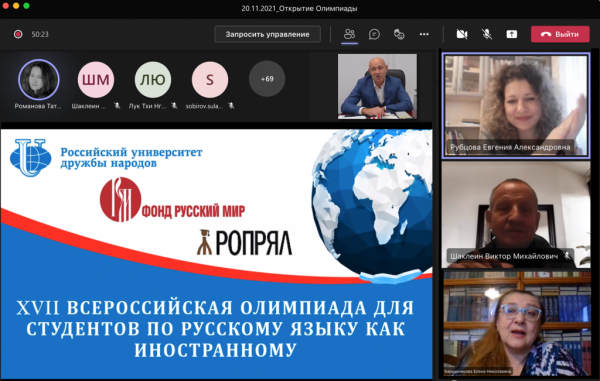 За победу во Всероссийской олимпиаде для студентов по русскому языку как иностранному борются почти пятьдесят человек. Турнир проводит Российский университет дружбы народов (РУДН) уже почти два десятилетия. Олимпиада стала уже семнадцатой по счёту, в первый раз её пришлось полностью перевести в онлайн-формат из-за неблагоприятной эпидемиологической обстановки.