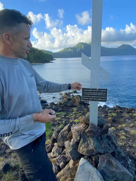 После получения разрешения от местных властей инициативу осветили местные СМИ, и на ее подготовку и осуществление ушло около четырех месяцев. В ноябре наш волонтер Владислав установил поклонные кресты на двух островах-вулканах — Анатахане и Пагане. Кресты с памятными табличками воздвигнуты согласно всем православным канонам, их хорошо видно издалека: как с моря, так и с суши. Господь благословил успеть осуществить эту первую часть проекта уже в нынешнем году, в ноябре, несмотря на то что судоходный сезон уже закрыт. По Божией милости, море всё же было на удивление спокойным. Это позволило группе добровольцев, преодолев немалое расстояние, доплыть до обоих островов и установить кресты.