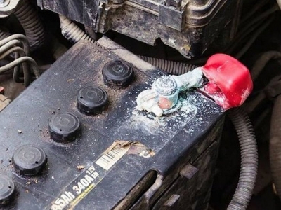 Одна из самых частых причин различных проблем при пуске мотора зимой — плохой контакт с клеммами. Они должны быть хорошо затянуты: так, чтобы их нельзя было повернуть или снять рукой. Кроме того, на них не должно быть ржавчины и окислов, то есть белого или зеленого налета. Если увидели окислы, возьмите наждачную бумагу средней абразивности и очистите контакты клемм. После чего хорошо бы смазать их солидолом или медной смазкой. Так можно надолго забыть о ржавчине.