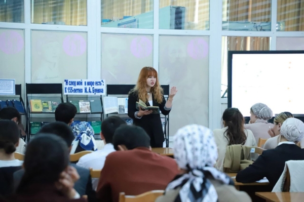 21 ноября в Русском центре в РТСУ было проведено открытое занятие по истории русской литературы на тему: «Психологический портрет Печорина: личность в конфликте с обществом и с самим собой». Занятие было проведено преподавателем кафедры мировой литературы РТСУ Муллоевой Камилой Неъматуллоевной. Занятие было посвящено исследованию жанровых и композиционных особенностей романа М. Ю. Лермонтова «Герой нашего времени». Помимо работы над самим романом, студенты презентовали результаты самостоятельной работы на тему: «Роман «Герой нашего времени» в литературной критике. В ходе занятия использовались различные «интерактивные технологии и работа с рабочими листами.