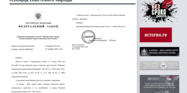 Напомним, 29 декабря 2025 года Президент Российской Федерации В.В.Путин подписал указ, устанавливающий 19 апреля Днём памяти жертв геноцида советского народа, совершённого нацистами и их пособниками в период Великой Отечественной войны 1941-1945 годов. МИД России во взаимодействии с Следственным комитетом, другими компетентными ведомствами, а также Национальным центром исторической памяти при Президенте Российской Федерации на системной основе проводит работу над закреплением квалификации преступлений фашистских захватчиков в качестве ГЕНОЦИДА народов Советского Союза.