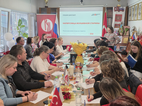 18 апреля в Русском центре Стамбула (Российское общество просвещения, культурного и делового сотрудничества) состоялся Тотальный диктант – ежегодная просветительская акция, объединяющая любителей русского языка по всему миру. Стамбул вновь стал частью глобального проекта, популяризирующего грамотность и интерес к русскому слову.