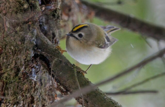 Самую маленькую птицу России — желтоголового королька — удалось поймать в объектив фотокамеры в Лосином острове. Из-за крошечного размера пернатую очень сложно увидеть в природе.