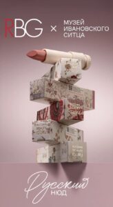 Вдохновившись поездкой, мы решили воплотить культурное и художественное наследие в упаковке помады «Русский нюд». На основе образцов ивановской росписи по ткани из Музея Ивановского ситца, команда RBG разработала дизайн коробки помады, а именно с использованием росписи: «Ткань «Лино полосатое» Куваевской мануфактуры (экспонат Всемирной выставки в Париже, 1900 г.), «Ситец Мебельный Белоземельный» мануфактуры О.С. Сокова, Ситец фабрики А.И. Гандурина с братьями (экспонат Всемирной выставки в Чикаго, 1893 г.). Таким образом, мы связали старинное ткацкое ремесло, которое веками украшало женщин по всей стране, с ценностью Russian Beauty Guru – красота по-русски.