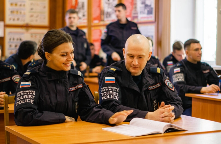 В 9 утра ребята в форме заходят в аудиторию. Каждый день начинается с языковой практики – на английском языке полицейские разбирают кейсы, типичные ситуации, наиболее частые вопросы, которые могут возникнуть в процессе несения службы. Преподаватель Марина рассказала нам, что иностранным гостям очень приятно, когда сотрудники полиции разговаривают на знакомом им языке – это сразу сближает, возникает доверие. Обычно взаимодействие с туристами предполагает помощь, а не наказание – кто-то заблудился, у кого-то телефон остался в общественном месте, кому-то просто интересно пообщаться с улыбчивыми людьми в форме.