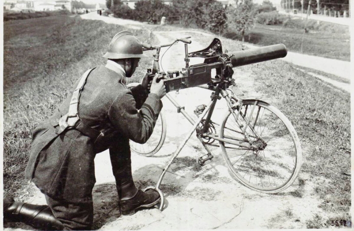 Впервые велосипеды для боевых нужд были опробованы во время Франко-германской войны 1870–71 гг. При осаде города Бельфор французы весьма удачно организовали доставку депеш на нескольких «костотрясах». Затем опыты применения подобных машин в армейском деле проводились итальянцами в 1875-м: «пауков» с огромным — более полутора метров — передним колесом использовали в качестве транспорта для связных, посылаемых командирами частей. 4 года спустя появилась первая книга на эту тему, подготовленная французом Рене Ламоном, — «Как пользоваться велосипедами на войне для помощи пехоте, кавалерии и артиллерии. Сражение велосипедистов».
