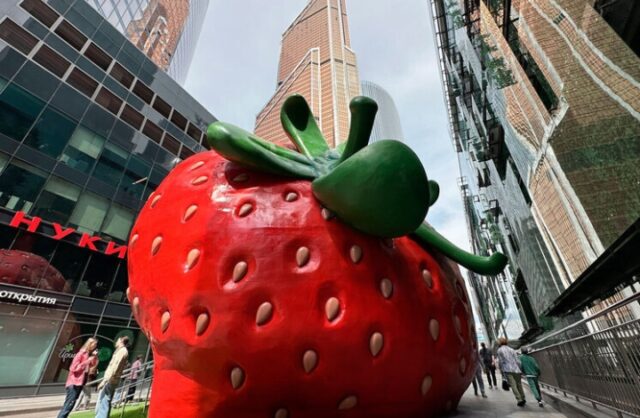 В строгих интерьерах «Москва Сити» особенно ярко смотрится павильон в виде клубники. Это место, где можно купить здоровую еду и напитки из натуральных продуктов.