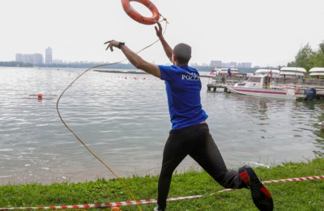 Напомним, конкурс на звание лучшего спасателя — одна из «номинаций» городского конкурса «Московские мастера», предусматривающего соревнования в 40 специальностях. Первый день соревнований посвящен физической подготовке, теоретическому конкурсу (между собой спасатели называют его — «компьютер»), а затем спасению на воде. Сразу после построения часть спасателей отправились разминаться на турник — подтягивание это ключевой элемент ОФП — а с причала станции начали, опять же, в тренировочных целях, кидать в цель спасательные средства — круги и так называемые «концы Александрова». Водные соревнования во второй половине дня — красивое зрелище: спасатели будут плавать на скорость на дистанции в 50 и 100 метров, нырять за манекеном-«пострадавшим», а затем и оказывать ему «первую помощь».