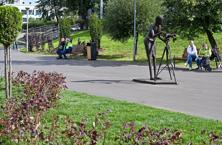 За всей этой красотой наблюдают не только люди, но и симпатичный металлический «Фотограф» — скульптура в стиле стимпанк на Нагатинской набережной. Произведение авторства Андрея Асерьянца появилось в районе дома №56 в 2013 году, и местные жители сразу его полюбили. А теперь, после преображения соседних набережных и появления единого пешеходного маршрута, «Фотограф» наверняка получит новых почитателей из других районов города.