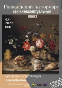 4 октября в интеллектуальном пространстве «Свое Поле» пройдет арт-завтрак с искусствоведом Еленой Карабин «Голландский натюрморт как интеллектуальный квест».
