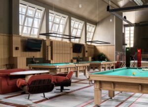 Многофункциональный комплекс предлагает 19 столов для русского бильярда, два для американского пула и даже столы с фиджитал‐технологиями. Для гостей подготовили восемь игровых VIP-комнат, караоке-зал и даже детский центр.