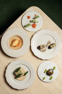 «Cовременная русская кухня для нас — не просто слова, а проработанная концепция. Фестивальный гастросет составлен как путешествие по России. В нем воплощен новый подход к локальным ингредиентам и традициям городов большой страны. Например, скумбрию замариновали и соединили с копченым кальмаром и томатной водой с аджикой, а филе оленя дополнили кремом из топинамбура и маринованной айвой,» — комментирует шеф-повар ресторации Владимир Щепилов.