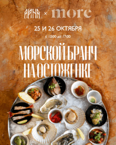 MORE Seafood Bar — финалист топ-10 Лучших ресторанов Дальнего Востока по версии Wheretoeat-2025^ ресторан, с которого для многих начинается знакомство с Владивостоком и приморской кухней, и флагман поддержки местной марикультуры. Работая напрямую с рыболовными компаниями, он каждое утро получает свежий улов из морей Дальнего Востока, а шеф Юрий Крючков готовит из него удивительные блюда – от комбо из четырех видов тартара до сала из тюленя. 25 и 26 октября с 10:00 до 17:00 «Айна» станет для MORE Seafood Bar проводником в мир московской гастрономии, приглашая гостей на общие бранчи.