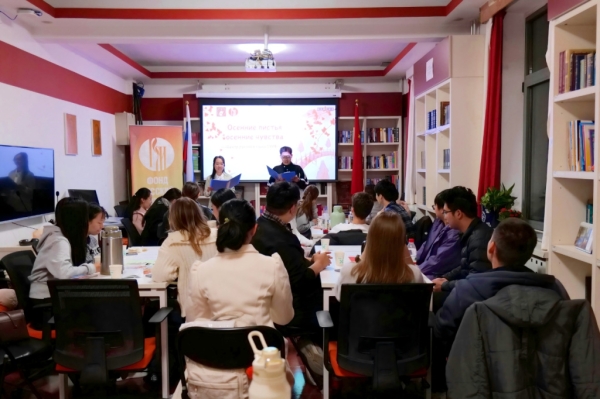 23 октября 2025 года в Русском центре Пекинского университета иностранных языков (ПУИЯ) царила особая атмосфера творчества и взаимопонимания. Здесь состоялся поэтический вечер и культурный салон «Осенние листья, осенние чувства», объединивший китайских и российских студентов.