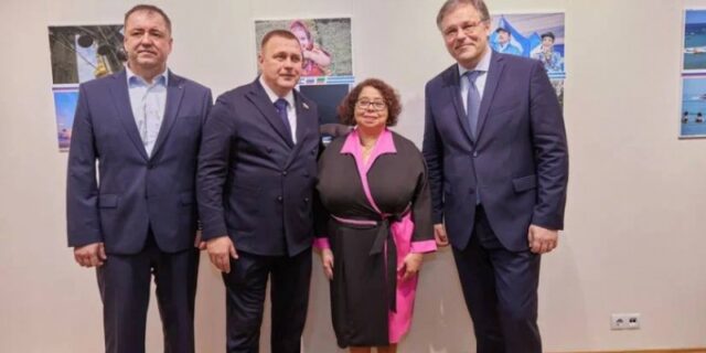 В открытии выставки приняли участие Мирошник Родион Валерьевич, посол по особым поручениям МИД РФ по преступлениям киевского режима, Боделан Владимир Русланович, вице-губернатор Херсонской области, Альба Асусена ТОРРЕС МЕХИЯ, чрезвычайный и полномочный Посол Никарагуа в России, Кастюкевич Игорь Юрьевич, сенатор РФ, представители Фонда поддержки и защиты прав соотечественников, проживающих за рубежом.