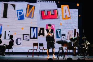 композиторов Антона Силаева и Тимофея Силаева, существующая на пересечении нескольких жанров. Визуальное решение обусловлено попыткой команды взглянуть на историю глазами подростка: художница Анна Брауде воссоздает мир, каким его видит 14-летний Гриша.