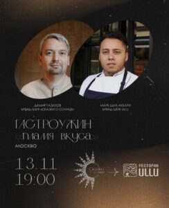 13 ноября ресторан ULLU приглашает на совместный ужин с казанским этнобистро «Сказки о солнце». Два шефа — Марк Шах Акбари и Дамир Газизов — соберут гостей, чтобы рассказать шесть историй у огня: о вкусе земли и воды, пламени и дыме, траве и свете.