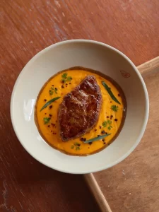 Бренд-шеф Александр Нечаев (ex-шеф Faro в Буэнос-Айресе, Культурные Люди) полностью переосмыслил меню, сохранив при этом уют и ту самую честную простоту, за которую skrepka любят на Китай-городе. Теперь здесь — больше ярких вкусов, долгие завтраки и блюда, в которых чувствуется внимание к деталям. Всё остаётся по-домашнему: свежая выпечка, пицца из печи, честная кухня и ощущение, будто ты в гостях у друзей, где вкусно и спокойно.