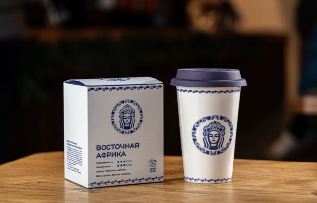 • дрип-кофе «Восточная Африка» (890 руб.),оформленные в фирменной сине-белой стилистике.
