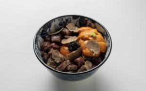 – донбури с вагю, дальневосточным морским ежом, черной икрой и трюфелем;
