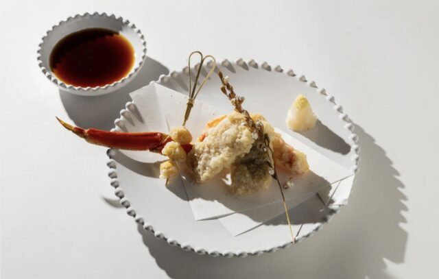 – темпура из краба-стригуна, угря и орехов гинкго;