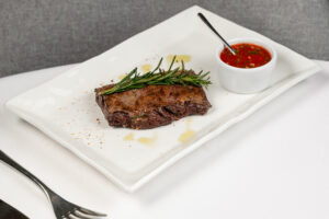 А можно ограничиться одним лишь мясом: стейк мачете в меню представлен и отдельно (950 руб. за 100 граммов).